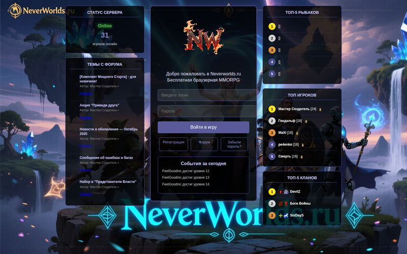 Скриншот сайта Neverworlds: земли, которых нет